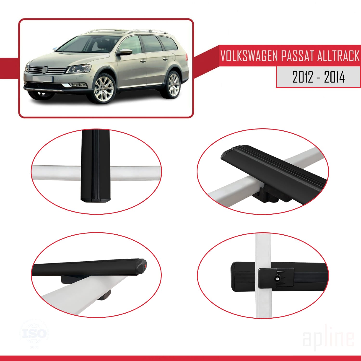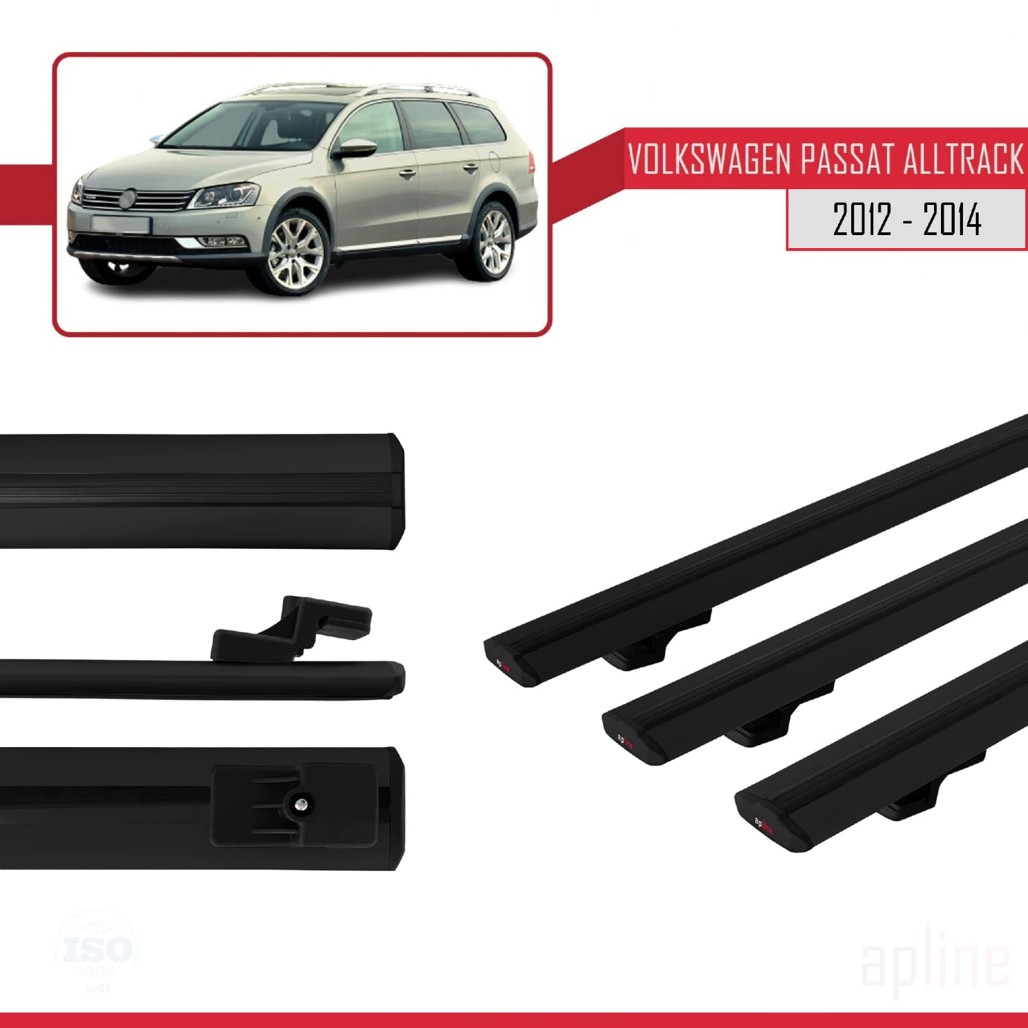 Compatible avec Volkswagen Passat B7 (3C) Alltrack 2012-2014 BASIC Model Barres de Toit Railing Porte-Bagages de Voiture Noir Aluminium 3 Barres