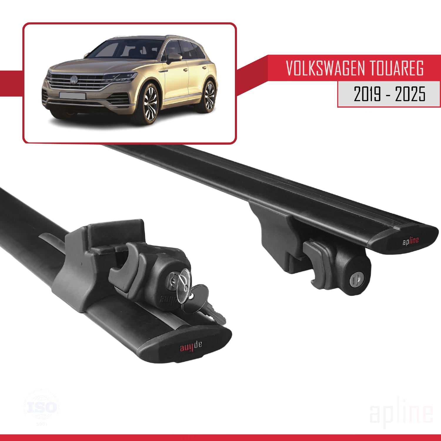Compatible avec Volkswagen Touareg 3 (CR) 2019-2024 HOOK Model Barres de Toit Railing Porte-Bagages de Voiture Noir Aluminium 2 Barres