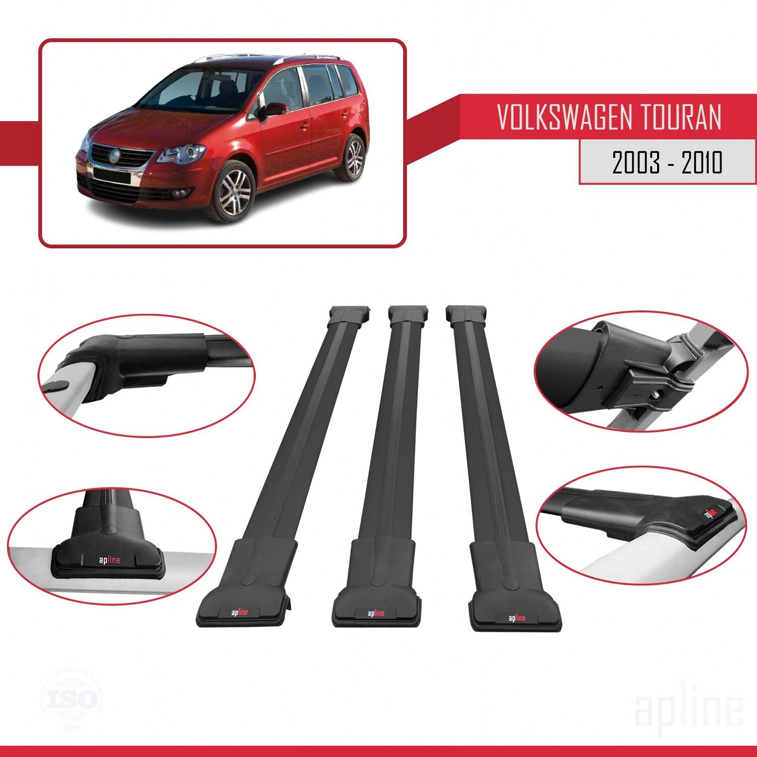 Compatible avec Volkswagen Touran (1T) Pre-Facelift 2003-2010 FLY Model Barres de Toit Railing Porte-Bagages de Voiture Noir Aluminium 3 Barres