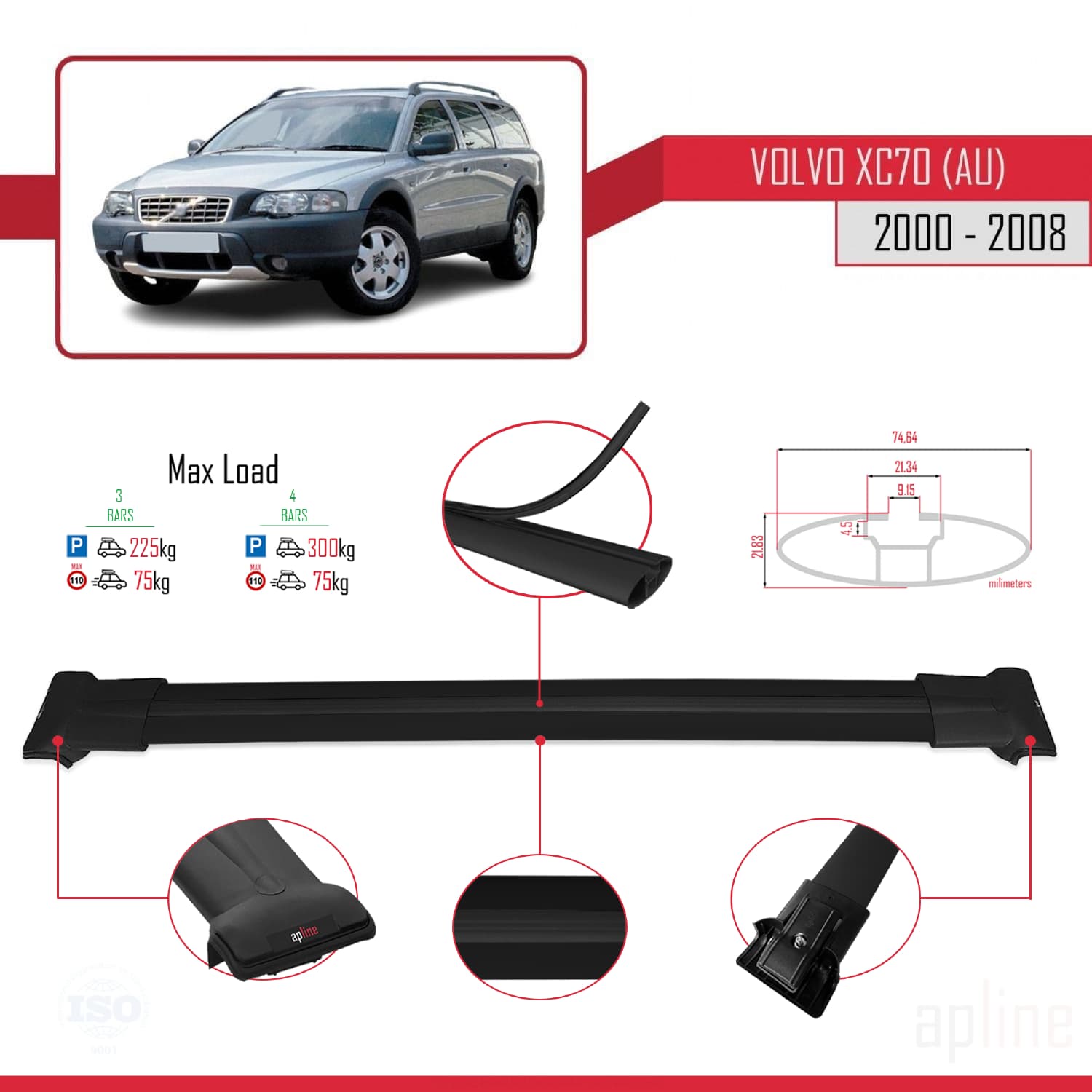 Compatible avec Volvo XC70 (P2) 2000-2007 FLY Model Barres de Toit Railing Porte-Bagages de Voiture Noir Aluminium 3 Barres