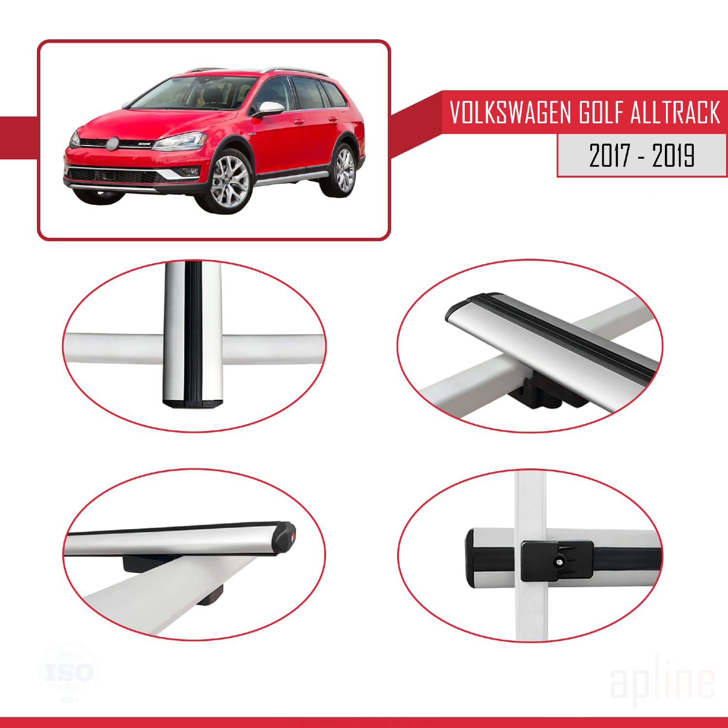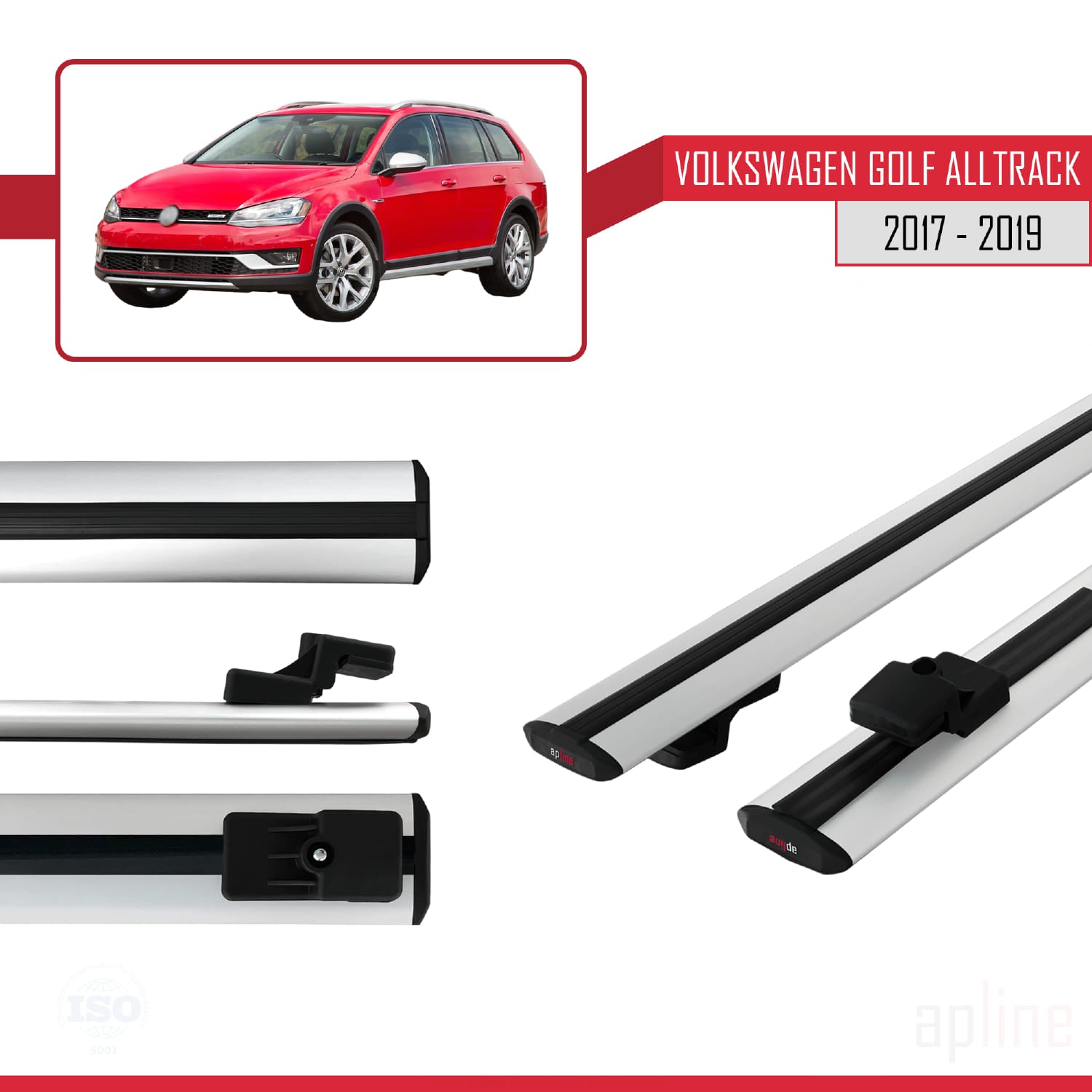 Compatible avec VW Golf Alltrack Mk7 2017-2019 BASIC Model Barres de Toit Railing Porte-Bagages de Voiture Gris Aluminium 2 Barres